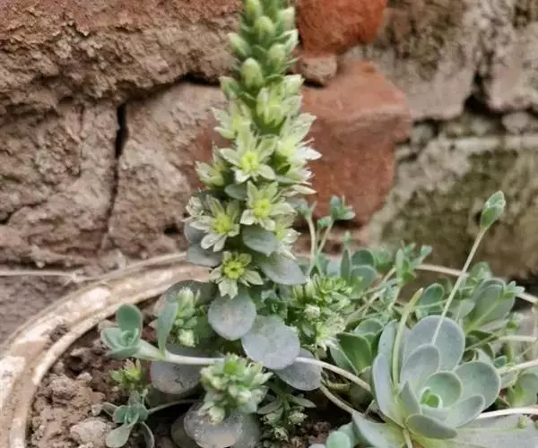 子持莲华习性强健、喜光、耐寒,也耐潮湿,夏季气温超过30℃后开始休眠。在春夏秋三季生长迅速,然而外形并不美观,在冬季休眠状态时会达到最佳观赏效果。可以在严寒的状态下存活,冬天不低于零下28℃可安全越冬。 即将开花的子持莲华