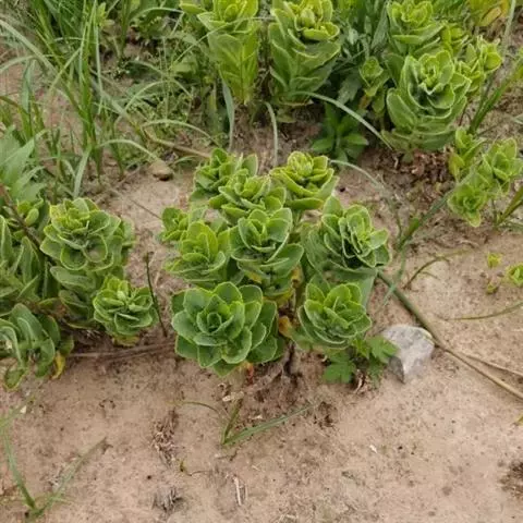 多年生草本,单生直径2-5厘米,叶第一年呈莲座状,第二年自莲座中央长出不分枝的花茎, 莲座球状,匍匐茎从叶腋生出,长约6厘米,淡绿色,无毛;新的植株从茎节点处萌发生长, 最高约10厘米左右,群生后植株宽度可达30厘米。