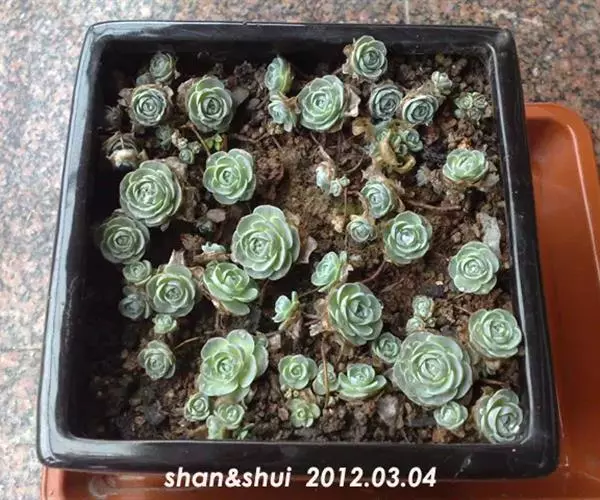 土壤:子持莲华的土壤一般选用泥炭混合珍珠岩加浮石,比例1: 子持莲华群生 1:1,为了不使植株和土表接触,也为了更加透气,可以铺上颗粒的干净河沙,河沙尺寸3到5毫米,沙层厚度5毫米左右。