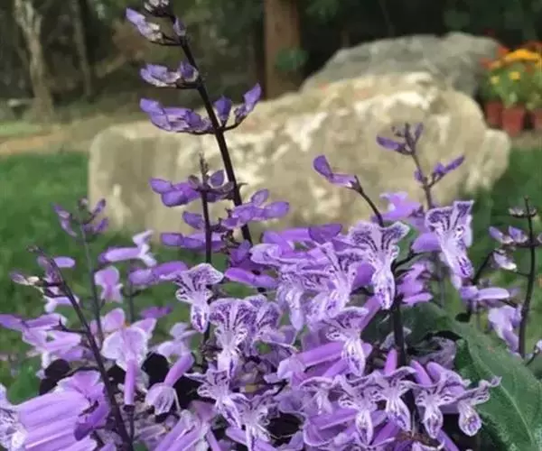 花萼管状,二唇形,具等距的15脉,上辱中齿较大,卵状圆形。花冠多少二唇形,下唇中裂片大,张开,稍内凹,侧裂片与上唇裂片近相等。雄蕊4,后对自花冠上唇2裂片间伸出甚多,前对在散粉前内藏,散粉后在上下唇间伸出更长(属63)。