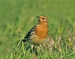 黄腹鹨:是雀形目鹡鸰科的鸟类,属小型鸣禽,体长约15厘米。似树鹨但上体褐色浓重,上喙较细长,…