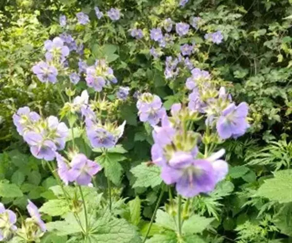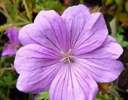毛蕊老鹳草(Geranium platyanthum Duthie)是牻牛儿苗科多年生草本,高30-80厘米,根茎短粗,直生或斜生,叶基生和茎上互生,花序通常为伞形聚伞花序,顶生或有时腋生,花瓣淡紫红色,宽倒卵形或近圆形,经常向上反折,蒴果长约3厘米,被开展的短糙毛和腺毛,种子肾圆形,灰褐色,花期6-7月,果期8-9月。毛蕊老鹳草分布于我国大部分地区,俄罗斯东、西伯利亚、远东、蒙古和朝鲜也有分布,常生于山地林下、灌丛和草甸。