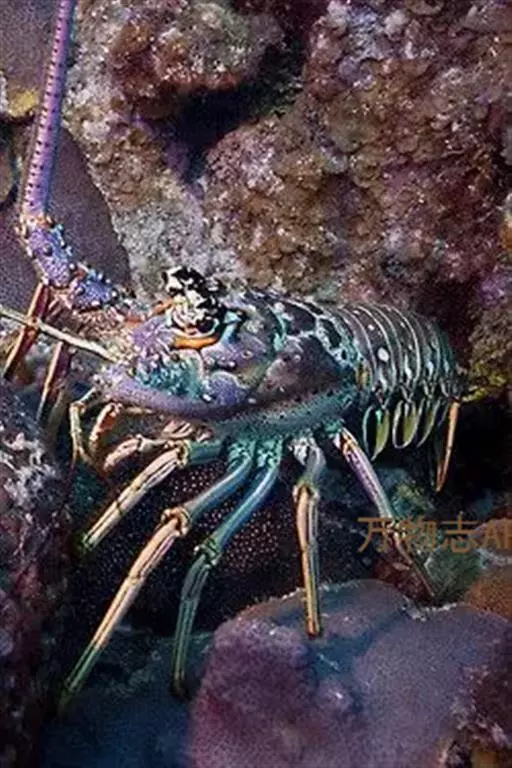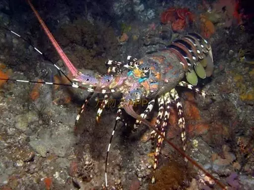 锦绣龙虾(Panulirus ornatus)为无螯下目,龙虾科,龙虾属的一种,俗称青龙虾、花龙虾、山虾、大和虾、沙虾等。体长可达60厘米,是龙虾属中体型最大者。腹部、第一触角和步足有黑褐色和黄色相间的斑纹。触角的基部有四对疣刺,后面的一对较小。体色多彩明亮。