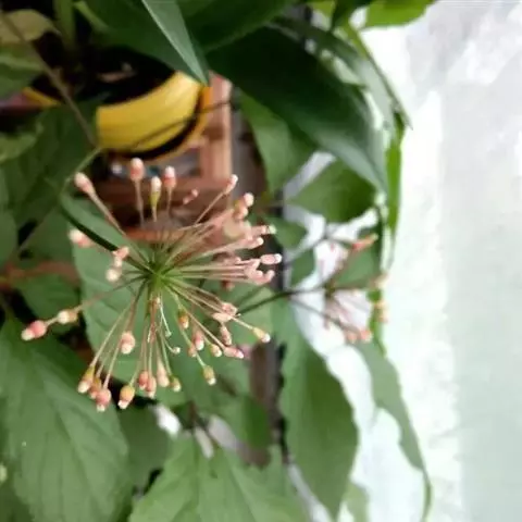 伞形花序单生于茎顶,有花80-100朵或更多;总花梗长7-25厘米,有条纹,无毛或疏被短柔毛;苞片多数簇生于花梗基部,卵状披针形;花梗纤细,长1-2厘米,微被短柔毛;小苞片多数,狭披针形或线形;花小,淡黄绿色;花萼杯形,稍扁,边缘有小齿5,齿三角形;花瓣5,长圆形,无毛;雄蕊5,花丝与花瓣等长;子房下位,2室,花柱2,稍内弯,下部合生,结果时柱头向外弯曲。果扁球状肾形,径约1厘米,成熟后为鲜红色,内有种子2粒;种子白色,三角状卵形,微具三稜。花期7-8月,果期8-10月。