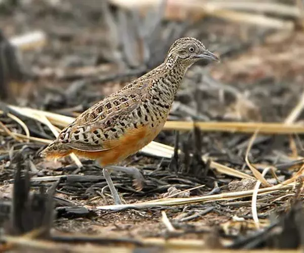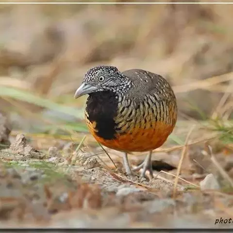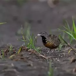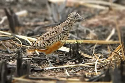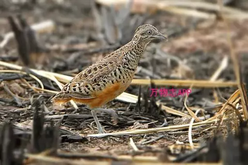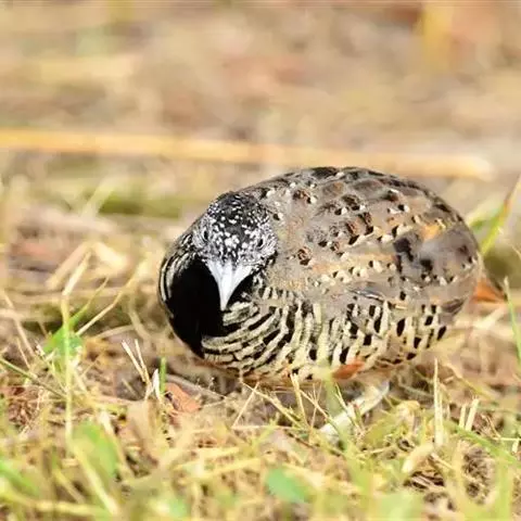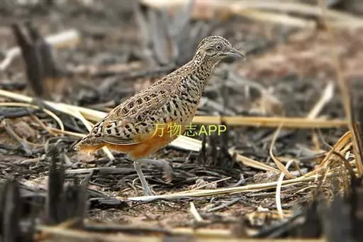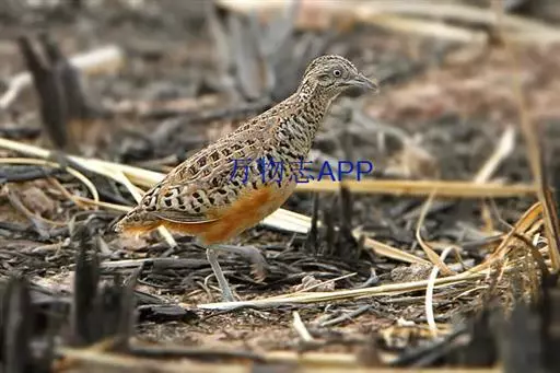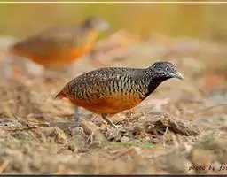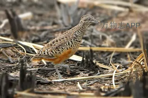 棕三趾鹑(学名:Turnix suscitator):属鹤形目三趾鹑科,体重54-70克;体长143-173毫米。体形和羽色与林三趾鹑和黄脚三趾鹑相似,雄鸟头上黑色,杂有褐色羽毛及白色斑点,背至尾羽褐色杂有灰褐色羽毛,喉、颈侧乳白色,杂有黑色细斑,上胸、胸侧淡黄褐色有黑色横斑。雌鸟红褐色较浓,脸、喉、前颈黑色有乳黄色斑点,胸侧橙褐色有黑色横斑。虹膜沙白色或灰黄色;嘴蓝灰色或灰褐色,尖端色淡;跗蹠和趾灰绿色,爪淡黄色。