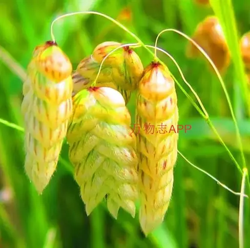大凌风草,拉丁文名:Briza maxima L. 禾本科、凌风草属一年生。秆直立,叶鞘平滑无毛,与叶片无明显界限;叶舌先端撕裂,上部者长达5毫米;叶片扁平,质薄,边缘微粗糙,圆锥花序开展,顶端常下垂,具少数小穗;分枝通常单一,小穗柄细弱,光滑,俯垂;小穗红褐色,卵形,下垂,边缘紫色或黄铜色,顶端近圆形;近边缘具短柔毛,第一外稃长7-8毫米;内稃倒卵形,脊具微柔毛。我国不少庭园引种栽培作观赏植物。