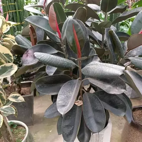 印度榕,别名橡皮树,桑科榕属多年生常绿乔木植物。株高30米;树皮灰白色,平滑;叶厚革质,…