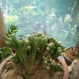3、施肥:鸾凤玉对肥料的需求不大,生长季节,每月施一次稀薄的肥水,宁淡勿浓。冬季仅能保持室温,就需停止施肥,盆土稍干,使植株能够安全越冬。