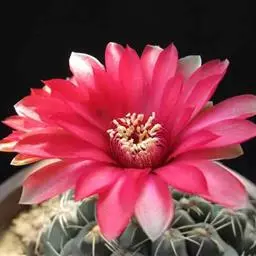 绯花玉 Speg.)是仙人掌科、裸萼球属多肉植物,植株呈扁球形,表皮墨绿色,刺针状,…