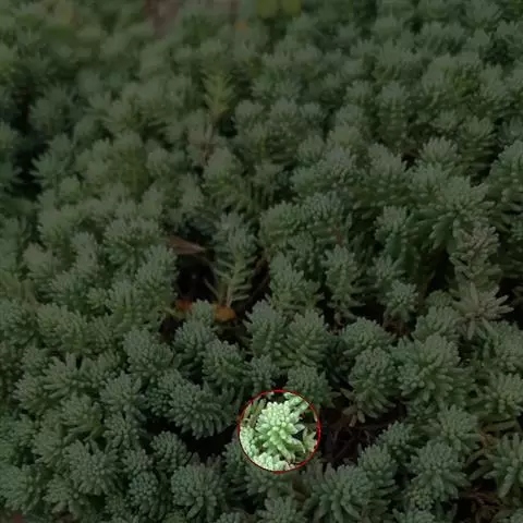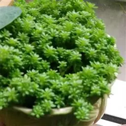 薄雪万年草别名矶小松,景天科景天属多年生草本植物,其细小的蓝绿色棒状叶片环绕生长于茎端,…