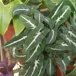 合果芋是天南星科,合果芋属多年生常绿草本植物,合果芋的茎节具气生根,攀附他物生长。叶片呈两型性,…