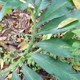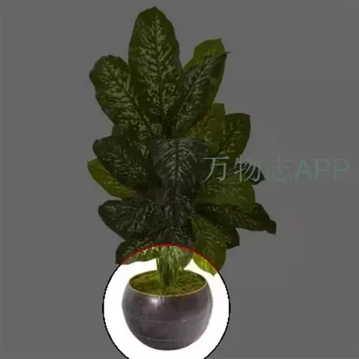 为多年生常绿草本植物。株高30-40厘米,茎直立不分枝,节间明显。叶互生,叶柄长,基部扩大成鞘状,叶狭长,浅绿色,叶面有灰绿条斑,面积较大。叶色美丽,特别耐阴,盆栽点缀厅室,效果明显,特别明亮舒适。