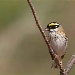 黄眉鹀是雀形目鹀科鹀属鸟类,体型中等偏小。雄鸟头部主要为黑色,冠纹白色,眉纹前段黄色而后段白色,…