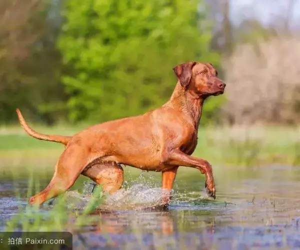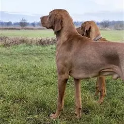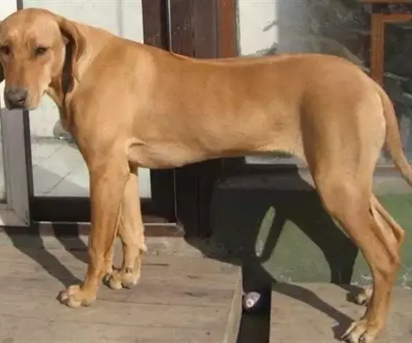 皮毛:是密实的短毛,滑顺,有光泽,毛色有淡黄褐色或红色。身体硕状,胸部厚实,肌肉结实。四肢强而有力,肌肉发达。尾长,尖端细,尾根强壮,行动时尾根向下 。