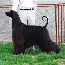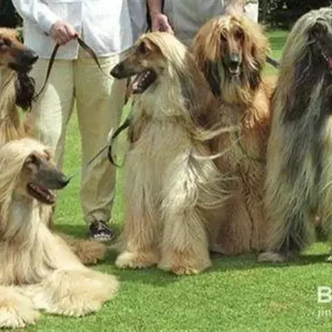 阿富汗猎犬全身披丝绢状的长毛,毛色鲜艳,呈多种颜色,背中线附近毛短,…