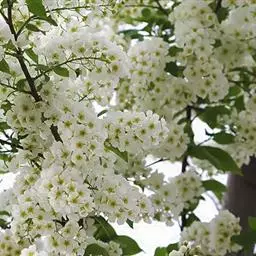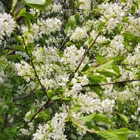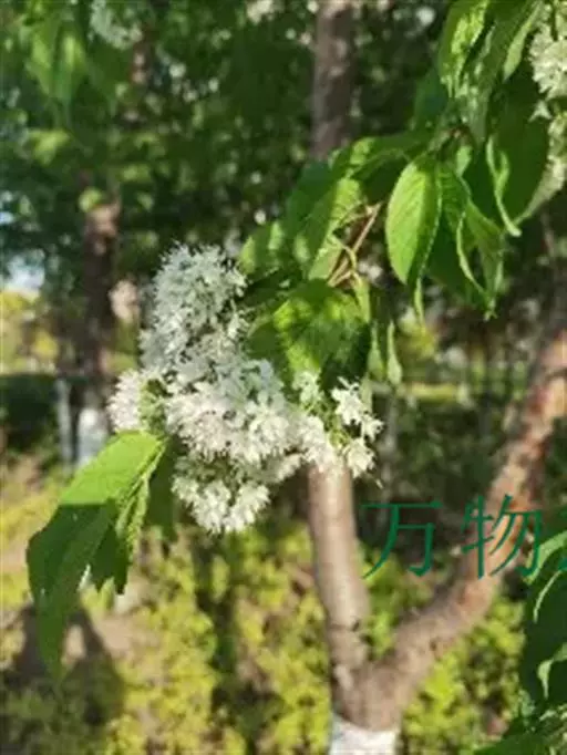斑叶稠李(学名:Padus maackii (Rupr.) Kom.)是蔷薇科稠李属植物,落叶小乔木,高4-10米;树皮光滑成片状剥落;老枝黑褐色或黄褐色,无毛。叶片椭圆形、菱状卵形,稀长圆状倒卵形,长4-8厘米,宽2.8-5厘米。总状花序多花密集,长5-7厘米,基部无叶。核果近球形,直径5-7毫米,紫褐色,无毛;果梗无毛;萼片脱落;核有皱纹。花期4-5月,果期6-10月。
