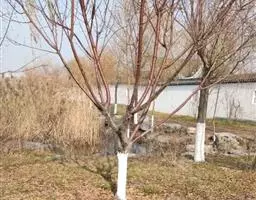 选择地势平坦、土层深厚、土壤湿润肥沃、中性或微酸性土壤地块作为大苗培育地,在前一年的秋季进行整地施肥,作垄,垄宽70厘米。次年春季当土壤融化到20厘米深时开始隔垄定植1年生苗木,株距120厘米,苗木要扶正踩实。栽植前对苗木根系进行修剪,保留根系长12-15厘米。空垄可用于栽植红皮云杉、青扦云杉等耐阴常绿树种苗木,苗高20-30厘米,株距120厘米。斑叶稠李苗木定植1年后,苗高可达2米,可在次年早春对苗木进行定干,定干高度在100-120厘米,也可根据实际需要确定定干高度。1年生苗木定植3-4年后,苗木分枝点粗度可达5-8厘米,苗高达4-5米,即可出圃栽植。在大苗培育过程中,每年都要在5-7月间进行2次除草、松土和追施氮肥,促进苗木健康生长。发现病虫害要及时防治。从苗木定干后的第二年开始,每年还要对苗木进行适当的修剪,主要是缩剪影响苗木冠型发育的大侧枝和剪除分枝点下部所有侧枝、萌枝。