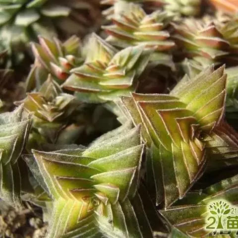 茜之塔 Toelken)是景天科青锁龙属多年生肉质草本植物。茜之塔叶交互对生,紧密排列,三角形,绿色,…