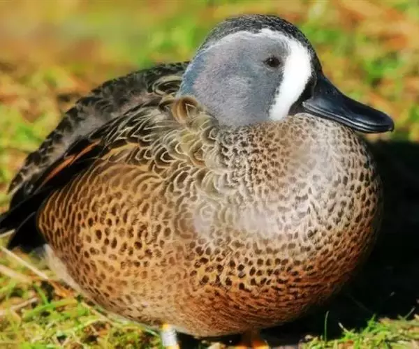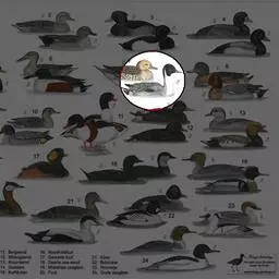 绿头鸭 绿头鸭雄鸟头、颈绿色,具辉亮的金属光泽。颈基有一白色领环。上背和两肩褐色,密杂以灰白色波状细斑,羽缘棕黄色;下背黑褐色,腰和尾上覆羽绒黑色,微具绿色光泽。中央两对尾羽黑色,向上卷曲成钩状,外侧尾羽灰褐色,具白色羽缘,最外侧尾羽大都灰白色。两翅灰褐色,翼镜呈金属紫蓝色,其前后缘各有一条绒黑色窄纹和白色宽边。颏近黑色,上胸浓栗色,具浅棕色羽缘;下胸和两胁灰白色,杂以细密的暗褐色波状纹。腹部淡色,亦密布暗褐色波状细斑。尾下覆羽绒黑色。