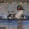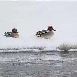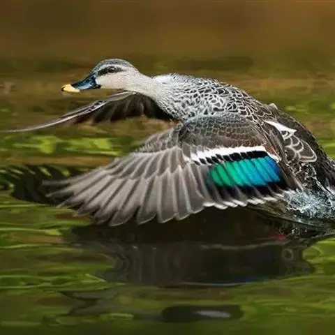 绿翅鸭是小型鸭类,体长37厘米,体重约0.5千克。嘴脚均为黑色。雄鸟头至颈部深栗色,…