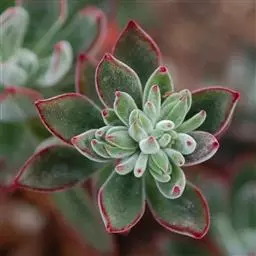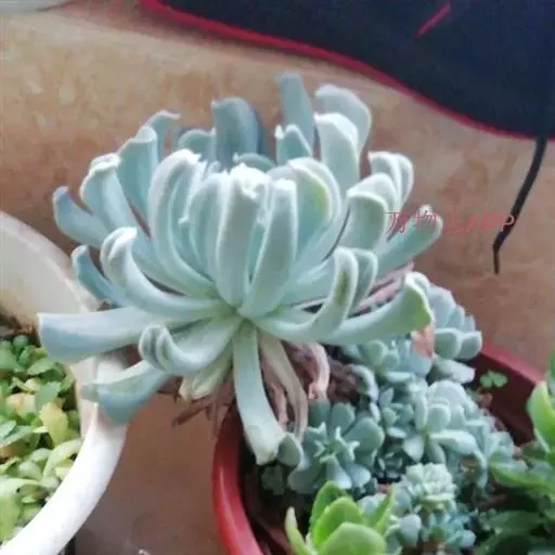 大和锦是景天科拟石莲花属的多肉植物。肉质叶排成紧密的莲座状,广卵形至散三角卵形,背面突起呈龙骨状,…