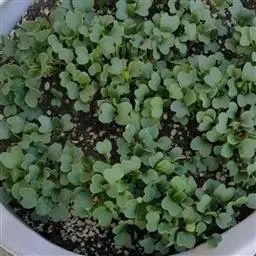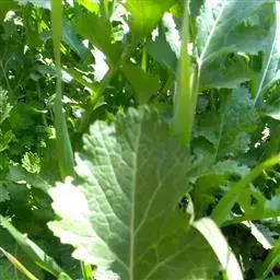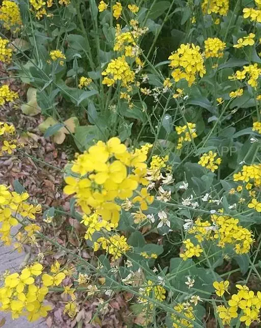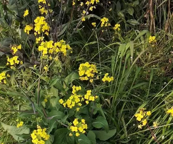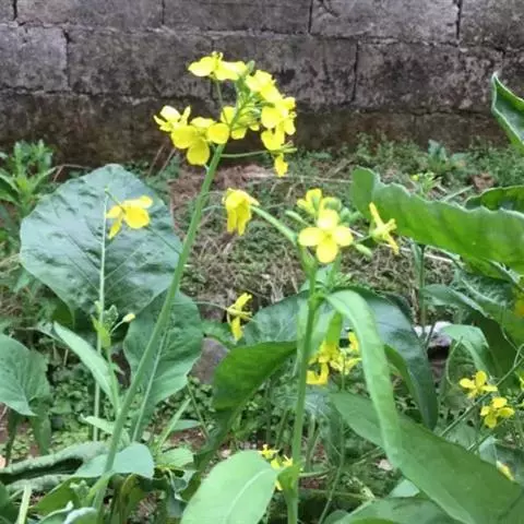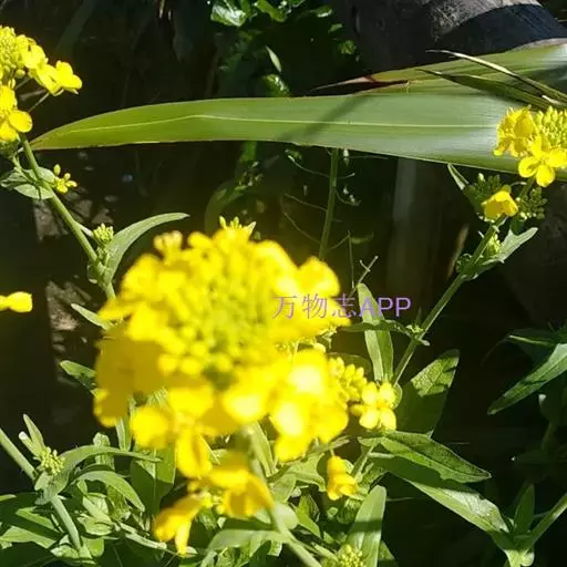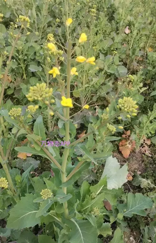 又名油菜。它的籽可以榨油。九、十月间插种,长出来的叶子形状颜色有点像白菜。