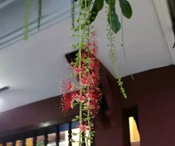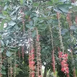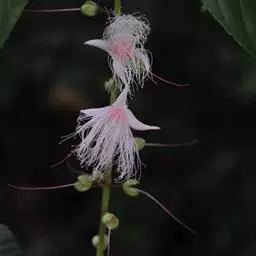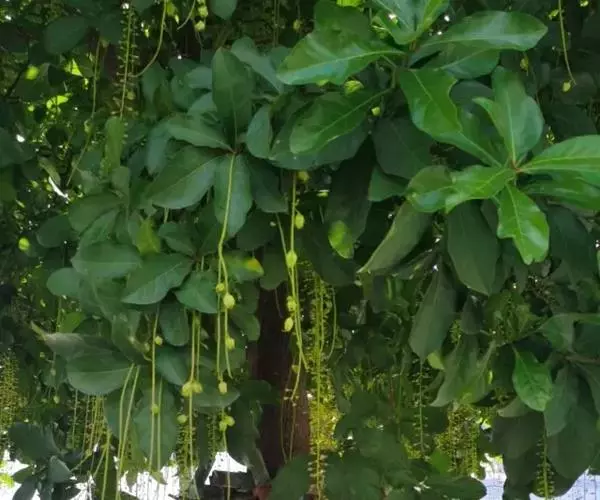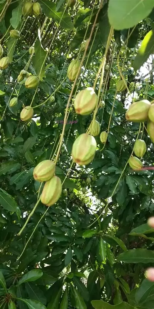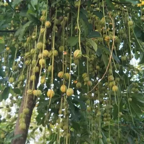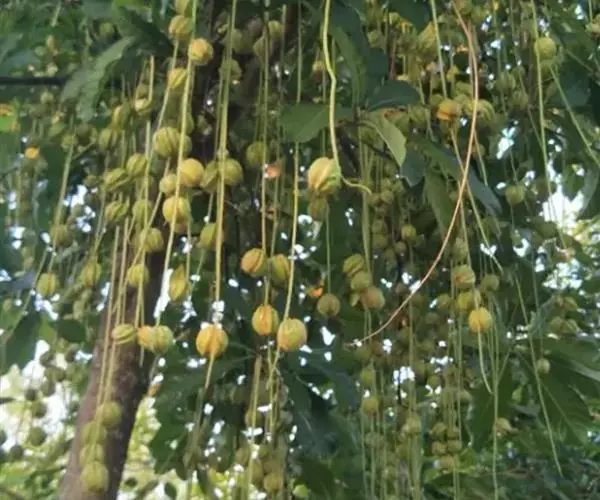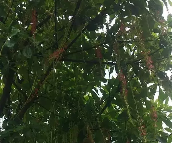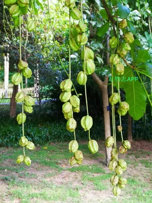 总状花序顶生,稀在老枝上侧生,下垂,长达70厘米或更长,总梗直径2-5毫米;花疏生,花梗长0.5-1.5厘米或稍过之;苞片小而早落;萼撕裂为2-4片,裂片等大或不等大,椭圆形至近圆形,长0.7-1.3厘米;花瓣4,椭圆形至卵状披针形,长1.5-2.5厘米;雄蕊通常6轮,最内轮为不育雄蕊,发育雄蕊花丝长3-4.5厘米左右;子房常3-4室,隔膜完全,胚珠每室2-3颗。果实卵圆形,长5-7厘米,直径2-4.5厘米,微具4钝棱,果皮厚3-12毫米,稍肉质,内含网状交织纤维束;种子卵形,长2-4厘米。花期几乎全年。