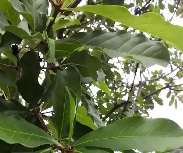 常绿小乔木或中等大乔木,稀灌木状,高可达20米;小枝稍粗壮,直径3-6毫米,干燥时灰褐色。叶常丛生枝顶,有短柄,纸质,倒卵形至倒卵状椭圆形或倒卵状矩圆形,长12-30厘米或更长,宽4-10厘米,顶端短尖至渐尖,基部钝形,常微心形,边缘有圆齿状小锯齿;侧脉10-15对,稍粗大,两面凸起,网脉清晰。