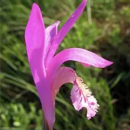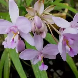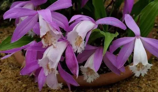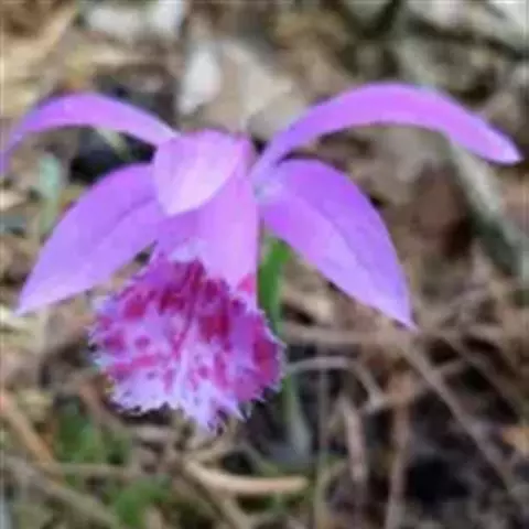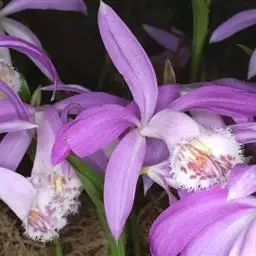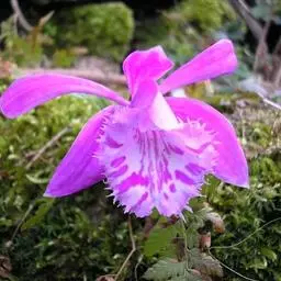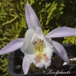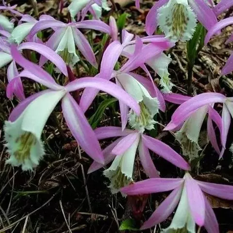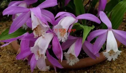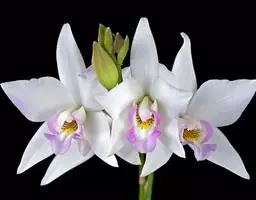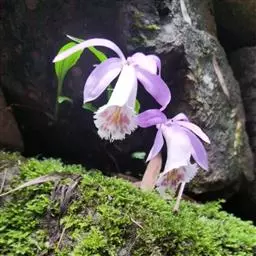 台湾独蒜兰(学名:Pleione formosana Hayata):半附生或附生草本。假鳞茎压扁的卵形或卵球形,上端渐狭成明显的颈,绿色或暗紫色,顶端具1枚叶。叶在花期尚幼嫩,长成后椭圆形或倒披针形,纸质。花葶从无叶的老假鳞茎基部发出,直立,长7-16厘米,基部有2-3枚膜质的圆筒状鞘,顶端通常具1花,偶见2花;花白色至粉红色,唇瓣色泽常略浅于花瓣,上面具有黄色、红色或褐色斑,有时略芳香;花瓣线状倒披针形,长4.2-6厘米,宽10-15毫米,稍长于中萼片,先端近急尖;唇瓣宽卵状椭圆形至近圆形,长4-5.5厘米,宽3-4.6厘米,不明显3裂。花期3-4月。