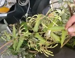 独蒜兰浇水的关键期是生长季节初期。这时独蒜兰根系刚刚开始生长,花期进入尾声。应该给以小水,只保持基质微潮,目的是促进生根。这时如果浇水过多,极易发生烂根。过一段时间,当根系基本长好后,才可以开始大量浇水。独蒜兰根系生长情况可以根据叶子生长速度判断。如果叶子已经开始迅速生长,说明根系已经扎好了。从此应给以大水。这是模仿独蒜兰原产地的梅雨季节。 雨水,软化水和RO纯水都可以用来浇独蒜兰。如果自来水很硬,也可以用,只是要控制好浇水量,见干见湿。生长期可以把它们放在室外。它们喜欢自然淋雨。秋季随着昼夜长短变化,独蒜兰伪球茎开始进入休眠期。生长停止,叶片变黄。这时又应该开始给以小水。当叶片完全干枯后,停止浇水。让基质完全干燥。叶片会自然脱落。