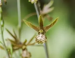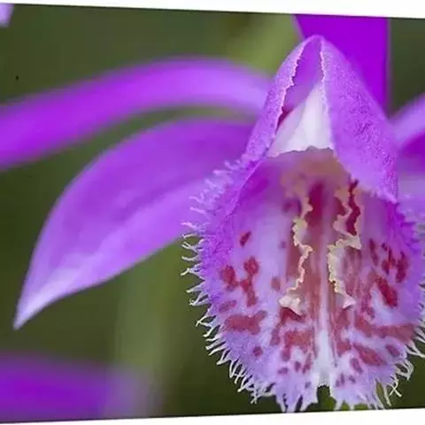 花瓣线状倒披针形,长4.2-6厘米,宽10-15毫米,稍长于中萼片,先端近急尖;唇瓣宽卵状椭圆形至近圆形,长4-5.5厘米,宽3-4.6厘米,不明显3裂,先端微缺,上部边缘撕裂状,上面具2-5条褶片,中央1条褶片短或不存在;褶片常有间断,全缘或啮蚀状;蕊柱长2.8-4.2厘米,顶部多少膨大并具齿。蒴果纺锤状,长4厘米,黑褐色。花期3-4月。