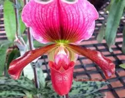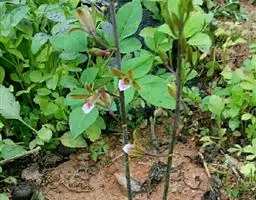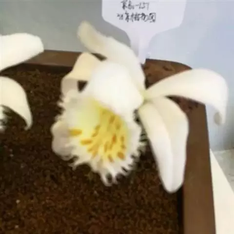 花葶从无叶的老假鳞茎基部发出,直立,长7-16厘米,基部有2-3枚膜质的圆筒状鞘,顶端通常具1花,偶见2花;花苞片线状披针形至狭椭圆形,长2.2-4厘米,宽达7毫米,明显长于花梗和子房,先端急尖;花梗和子房长1.5-2.7厘米;花白色至粉红色,唇瓣色泽常略浅于花瓣,上面具有黄色、红色或褐色斑,有时略芳香;中萼片狭椭圆状倒披针形或匙状倒披针形,长4.2-5.7厘米,宽9-15毫米,先端急尖;侧萼片狭椭圆状倒披针形,多少偏斜,长4-5.5厘米,宽10-15毫米,先端急尖或近急尖。