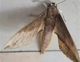 成虫体长40~45mm,翅展100~120mm。体、翅黄褐色,头及胸部有较细的暗褐色背线,腹部背面各节后缘有棕黑色横纹。前翅狭长,前缘近中央有较大的半圆形褐绿色斑,中室横脉处有一个淡白色小点,内横线及中横线不明显,外横线呈褐绿色波纹,顶角有一条暗褐色斜纹,将顶角分为二等分;后翅暗褐色,基部上方有超色斑。卵椭圆形,2~3mm,初产黄白色,后转褐色。