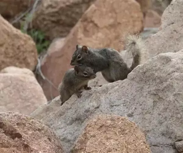 岩松鼠通常每年繁殖1次,春季交尾,每胎可产2~5仔,最多8仔。6月间出现幼鼠,秋末为数量高峰期。雄鼠的阴囊从2月下旬至9、10月份均外露。5、6月间阴囊特别膨大。9、10月雌鼠的乳头均已萎缩;说明此时已停止繁殖。寿命为3~12年。