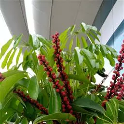昆士兰伞木,吕松鹅掌柴 ,称昆石兰遮树,澳洲鸭脚木、方式叶鹅掌柴、伞树、大叶伞。叶片阔大,柔软下…