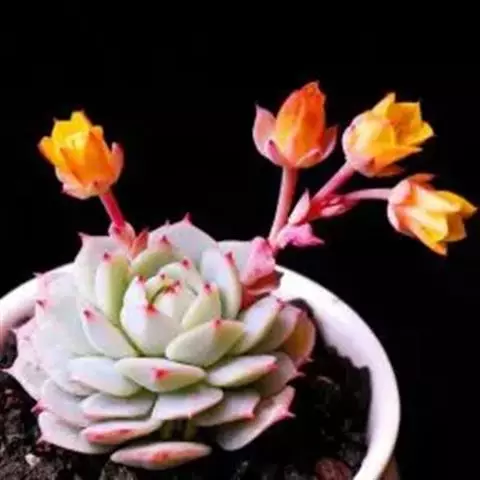 吉娃莲,景天科拟石莲花属,别名:吉娃娃,吉娃莲,植株小型,无茎的莲座叶盘非常紧凑。卵形叶较厚,带小尖,…