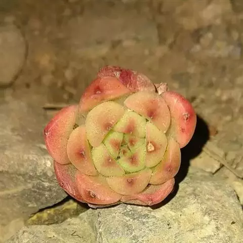 小红衣是景天科、拟石莲花属的一种多肉植物。叶片匙形,扁平细长,叶表具白粉,有明显的半透明边缘,…