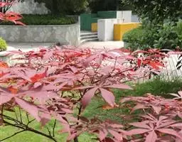 红枫,园艺种,槭树科槭属落叶小乔木,高5~8 m;树冠伞形,枝条开张,细弱。单叶对生,近圆形,薄纸质,…
