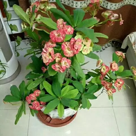 虎刺梅:别称铁海棠,是蔓生灌木植物。茎多分枝,长60-100厘米,直径5-10毫米,具纵棱,密生硬…