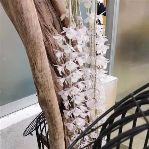 束花石斛是兰科石斛属植物。茎粗厚,肉质,下垂或弯垂,圆柱形,不分枝,具多节。叶二列,互生于整个茎上,…