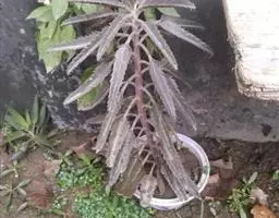 棒叶落地生根是景天科、落地生根属植物。茎直立、粉褐色。叶圆棒形,上表面有沟、粉色,有红褐斑。…