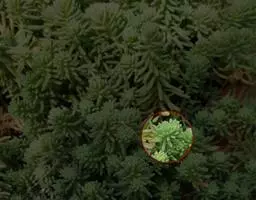 薄雪万年草别名矶小松,景天科景天属多年生草本植物,其细小的蓝绿色棒状叶片环绕生长于茎端,…