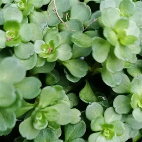圆叶景天,景天科常绿多年生肉质草本植物,匍匐型生长,叶片对生,尖端钝圆,全光照条件下,叶片秋季变红,…