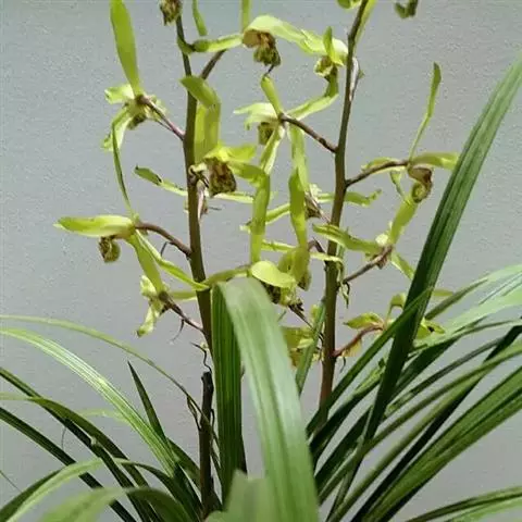 建兰素花,绿白色,清香,一枝开花5至12朵。叶色钢青,细而挺拔,有铮铮铁骨之相,所以叫铁骨素。在日…