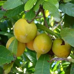 蛋黄果 Baehni),山榄科桃榄属小乔木。枝被褐色,短绒毛;叶窄椭圆形,先端渐尖;花生于叶腋,…