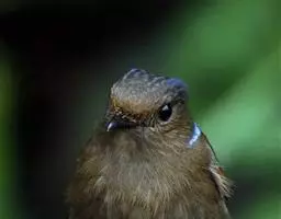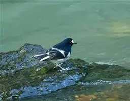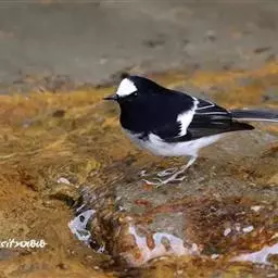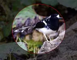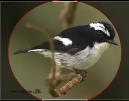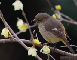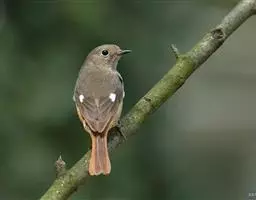 雌鸟和雄鸟基本相似,但上体较灰、呈灰沙褐色,头无黑色,脸和头侧棕褐色微沾黑色。两翅和尾褐色,内侧翅上覆羽沙皮黄色,飞羽外翈具窄的沙色羽缘,腰和尾上覆羽白色。尾黑色,基部白色。眉纹不明显,下体从颏到尾下覆羽皮黄白色,胸和两胁较暗较褐。