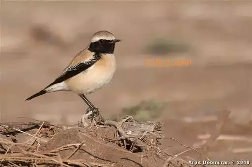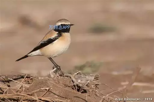漠䳭(学名:Oenanthe deserti)是鹟科、䳭属小型鸟类,体长14-17厘米。雄鸟上体沙棕色,腰和尾上覆羽白色,两翅和尾黑色,尾基部白色,眼纹白色,眉纹以下整个脸和头侧以及颏、喉黑色,其余下体白色。雌鸟和雄鸟大致相似,但颏、喉白色,脸和头侧亦不为黑色而呈暗棕褐色。特征明显,野外不难识别。