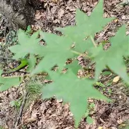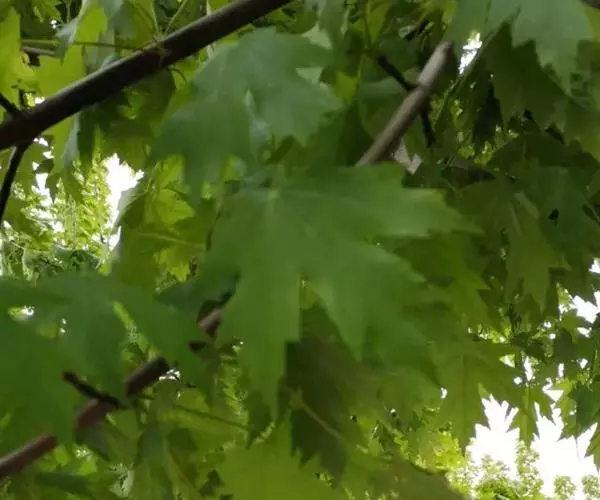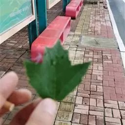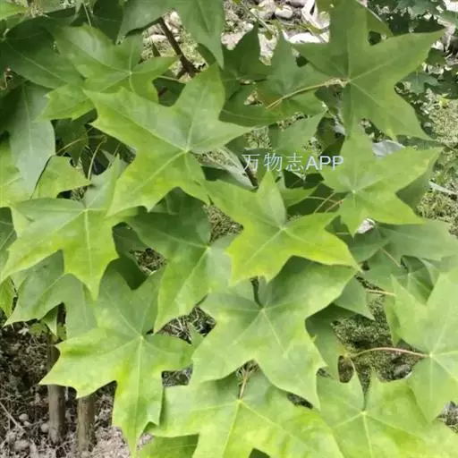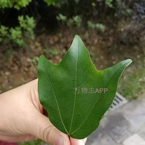 叶纸质,长5-10厘米,宽8-12厘米,常5裂,稀7裂,基部截形稀近于心脏形;裂片三角卵形或披针形,先端锐尖或尾状锐尖,边缘全缘,长3-5厘米,宽1.5-2厘米,有时中央裂片的上段再3裂;裂片间的凹缺锐尖或钝尖,上面深绿色,无毛,下面淡绿色,嫩时脉腋被丛毛,其余部分无毛,渐老全部无毛;主脉5条,在上面显著,在下面微凸起;侧脉在上面微显著,在下面显著;叶柄长3-5厘米,稀达9厘米,无毛,稀嫩时顶端被短柔毛。