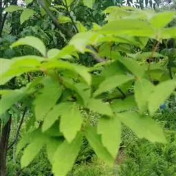 落叶乔木,高8-10米。树皮灰褐色或深褐色,深纵裂。小枝无毛,当年生枝绿色,多年生枝灰褐色,具圆形皮孔。冬芽小,卵圆形;鳞片锐尖,外侧微被短柔毛。