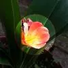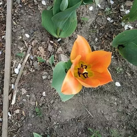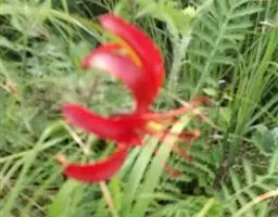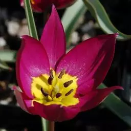 鳞茎皮纸质,内面顶端和基部有少数伏毛。叶3-5枚,条状披针形至卵状披针形。花单朵顶生,大型而艳丽;花被片红色或杂有白色和黄色,有时为白色或黄色,长5-7厘米,宽2-4厘米。6枚雄蕊等长,花丝无毛;无花柱,柱头增大呈鸡冠状。花期4-5月。